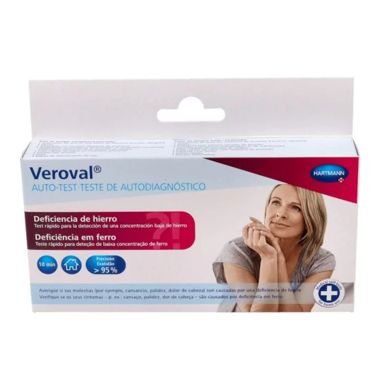 Con el auto-test «Deficiencia de hierro» de Veroval®, podrá saber de forma rápida y segura si los síntomas mencionados son consecuencia de la falta de hierro. Basta con una gota de sangre del dedo y diez minutos de su tiempo.